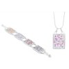 Souprava DNA čip je elegantní šperk vyrobený z krystalů Preciosa a komponentů z ryzího stříbra (925/1000). Díky prodlužovacím řetízkům u zapínání je délka šperků nastavitelná: